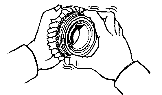 b) Check the braking effect of the synchronizer ring. Turn the synchronizer ring in one direction while pushing it to the gear cone. Check that the ring locks.