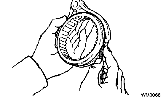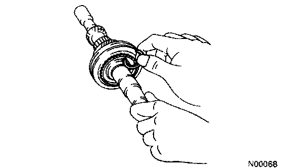 If the braking effect is insufficient, apply a small amount of the fine lapping compound between the synchronizer ring and gear cone. Lightly rub the synchronizer ring and gear cone together.