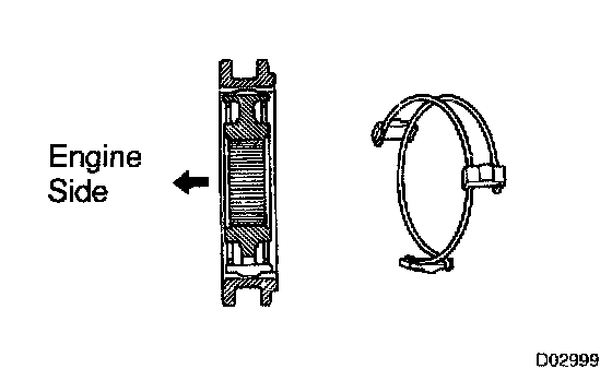 c) Place the synchronizer ring on the No. 2 hub sleeve assembly and align the synchronizer ring slots with the shifting keys.