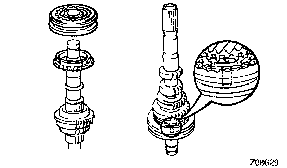 c) Install the No. 2 hub sleeve assembly so that the synchronizer ring slots and shifting keys are aligned.