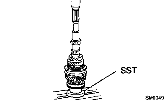 a) Using SST and a press, remove the rear ball bearing and 4th gear.