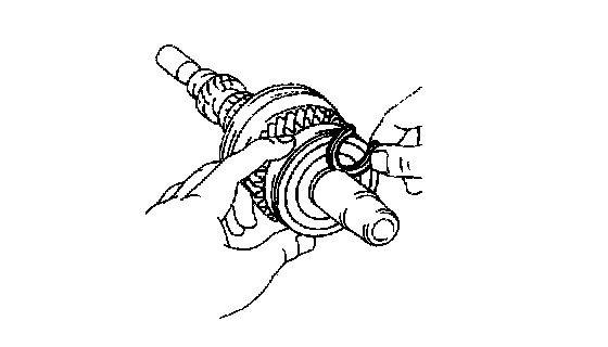 d) Using a feeler gauge, measure the clearance between the synchronizer ring back and gear spline end.