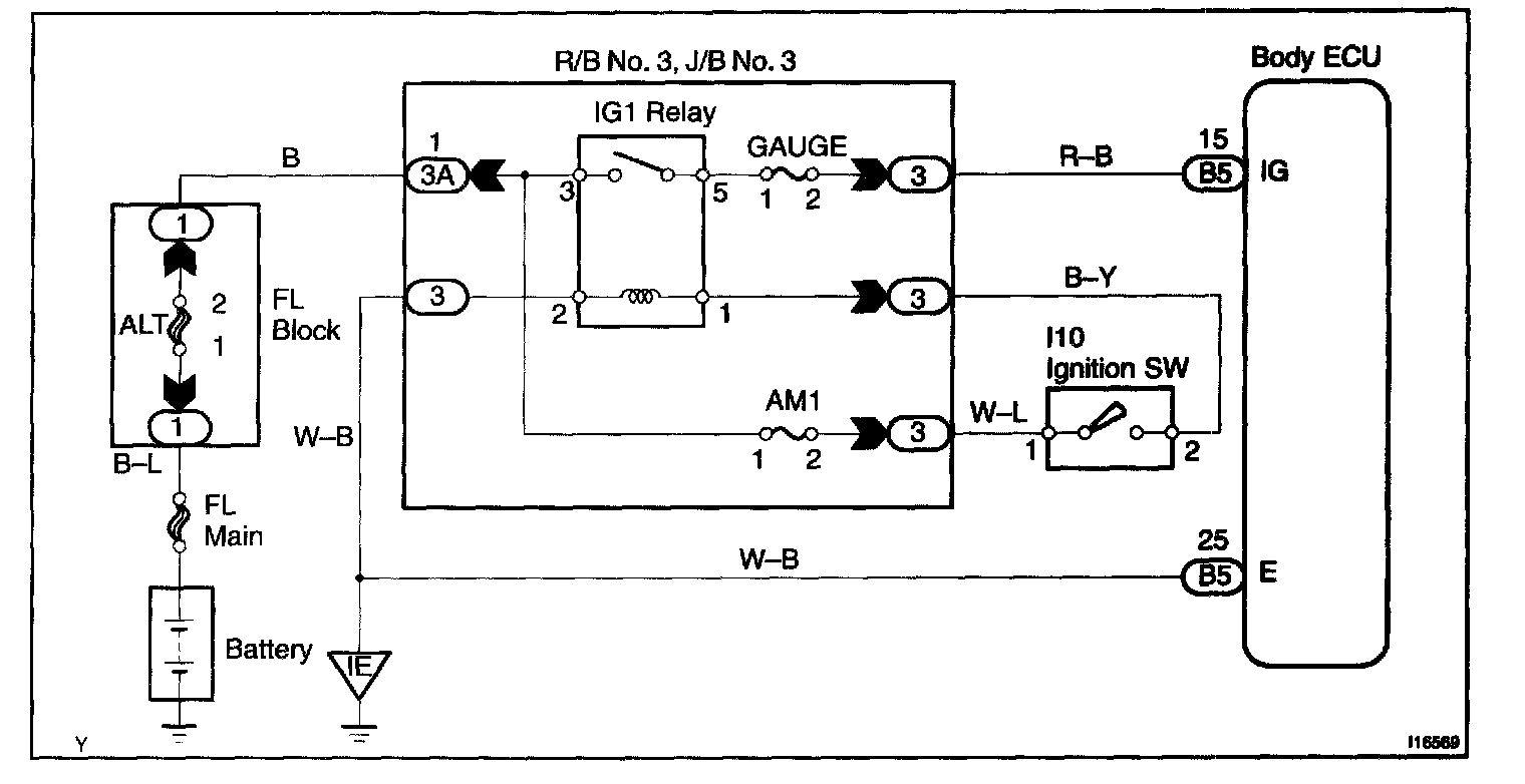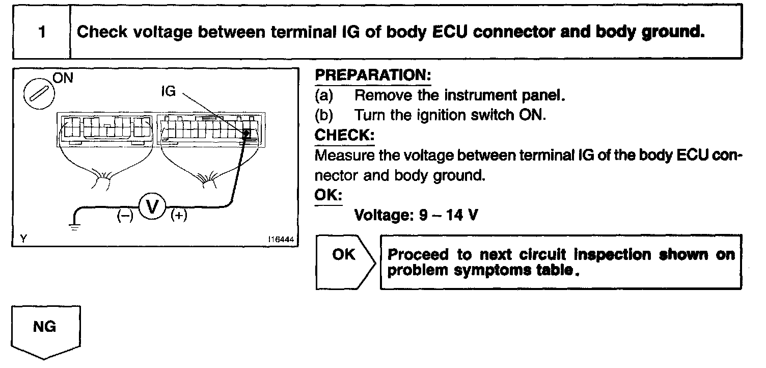 When the ignition switch is turned to the ON position, battery positive voltage is applied to terminal IG of the body ECU.