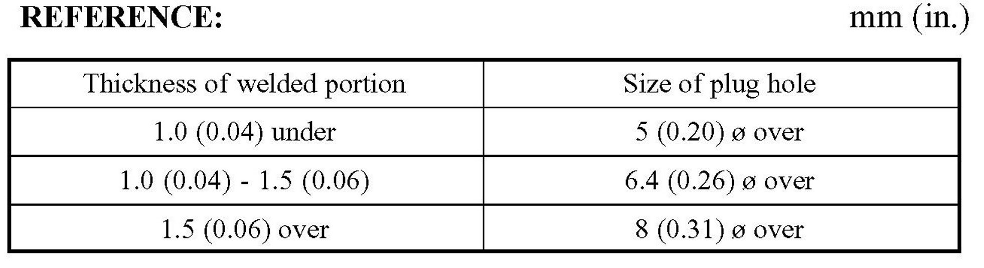 1. When welding panels with a combined thickness of over 3 mm (0.12 in.), use a MIG (Metal Inert Gas) welder for plug welding.
