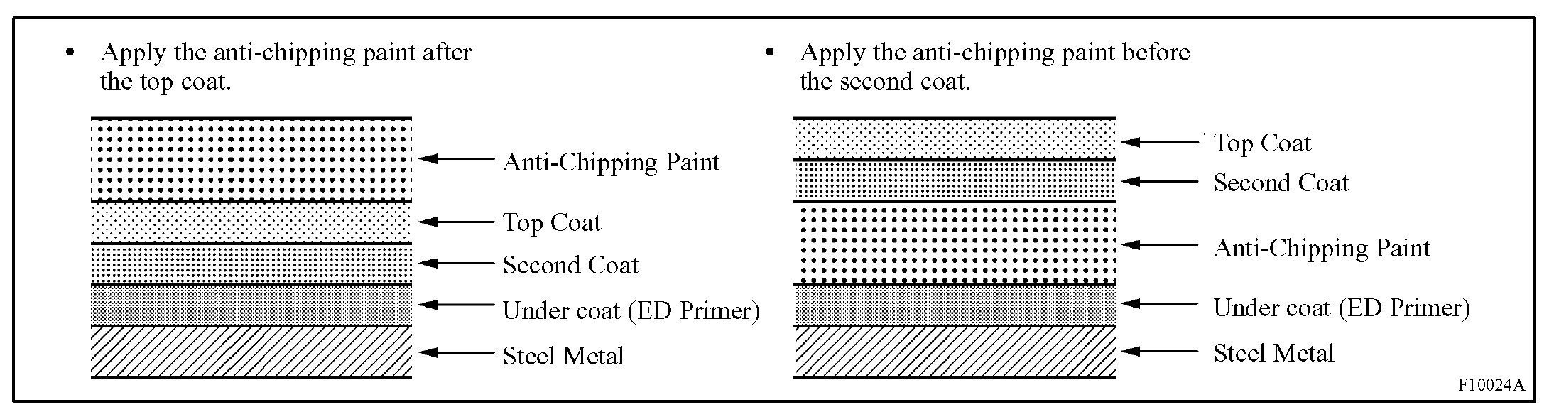 HINT: Depending on the model or the application area, there are cases where the application of anti-chipping paint is necessary before the second coat or after the top coat.