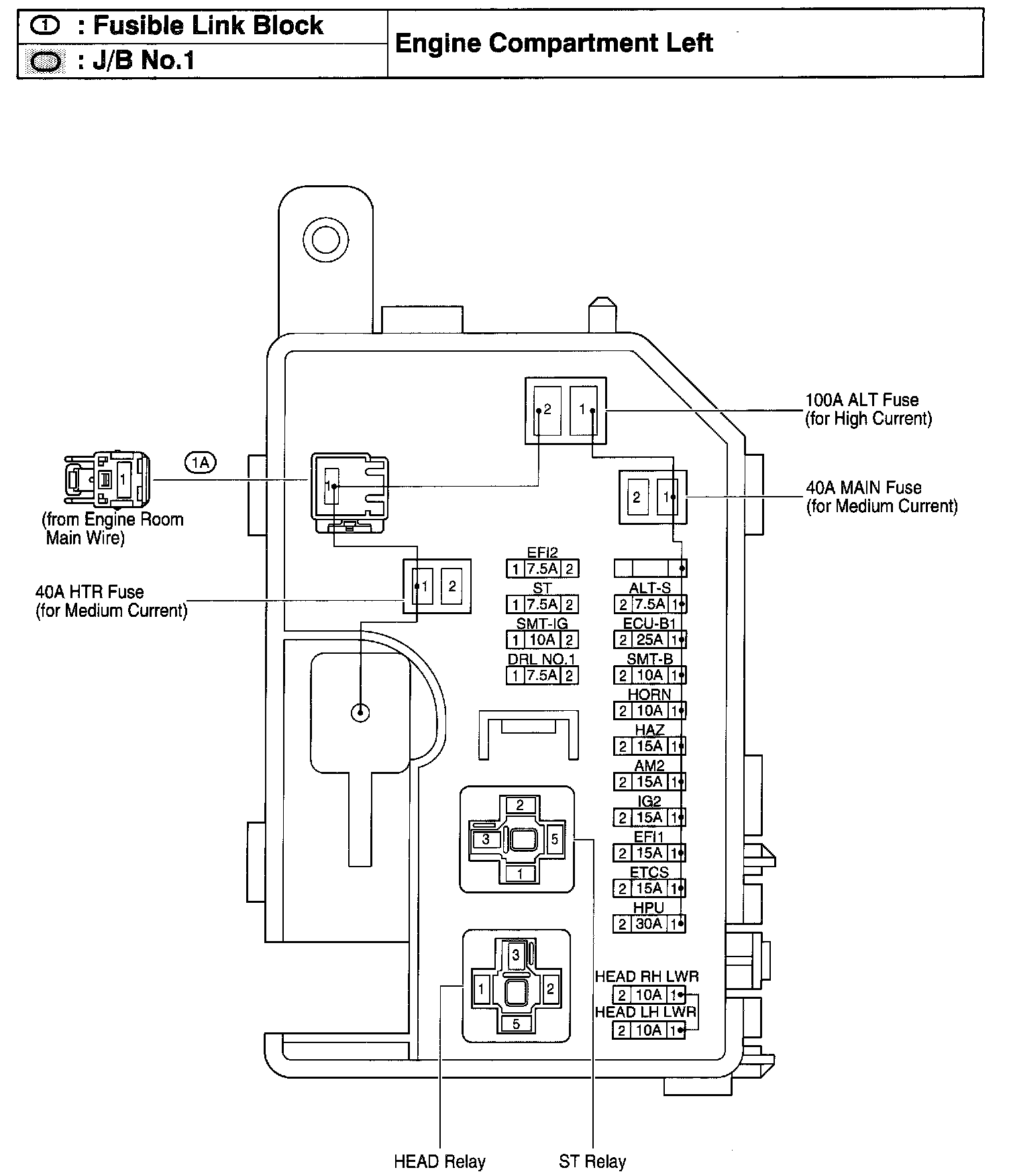 Fusible Link Block & J/B No.1 - Engine Compartment Left: