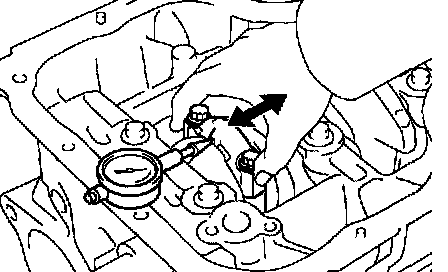 Using a dial indicator, measure the thrust clearance while moving the connecting rod back and forth.