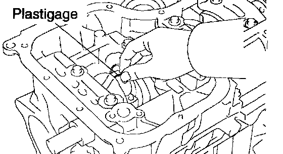 i. Lay a strip of Plastigage across each journal.