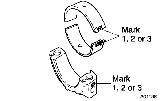 HINT: If replacing a bearing, replace it with one having the same number as marked on the connecting rod. There are 3 sizes of standard bearings, marked 1, 2 and 3 accordingly.