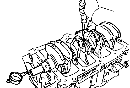 Using a dial indicator, measure the thrust clearance while prying the crankshaft back and forth with a screwdriver.