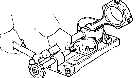 c. Using a plastic-faced hammer and a brass bar, lightly tap out the piston pin and remove the connecting rod.