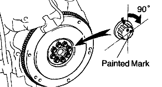 e. Retighten the flywheel bolts by an additional 90°.