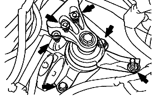 h. Tighten the through bolt and nut holding the rear engine mounting insulator to the mounting bracket.