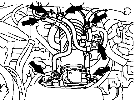 Connect the 2 radiator hoses and 2 heater hoses.