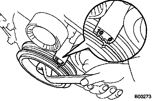 a. Turn the crankshaft pulley, and align its groove with timing mark 0 of the timing chain cover.