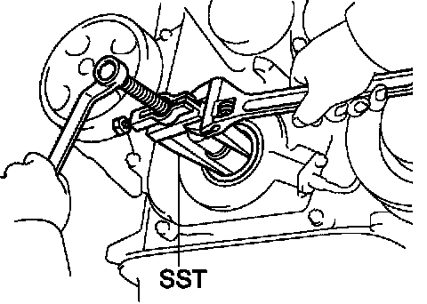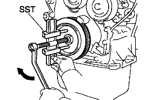 HINT: If necessary, remove the pulley with SST.