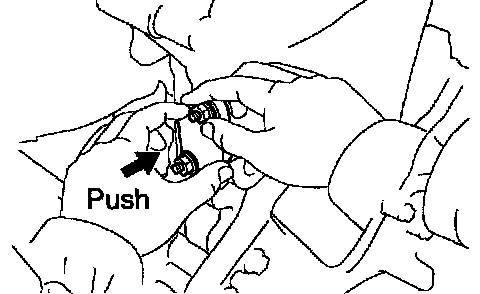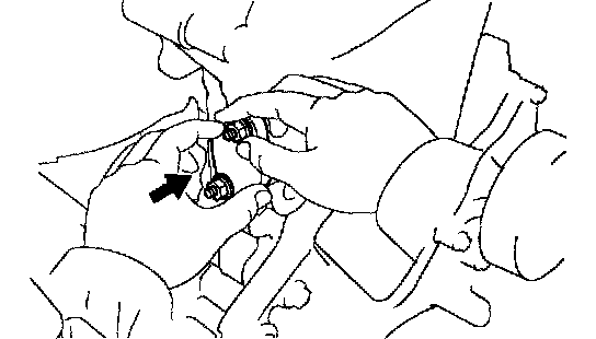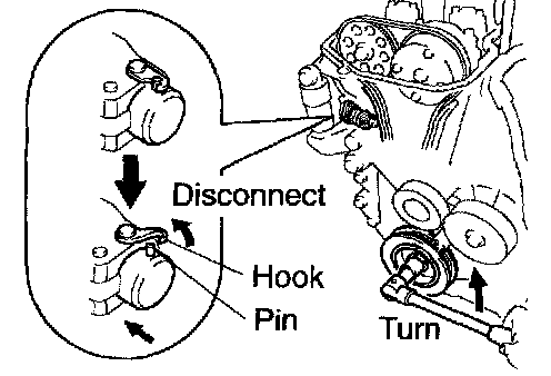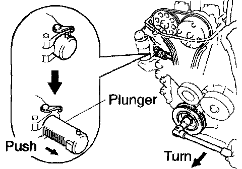 HINT: If the plunger does not spring out, press the slipper into the chain tensioner with a screwdriver or your finger so that the hook is released from the knock pin and the plunger springs out.