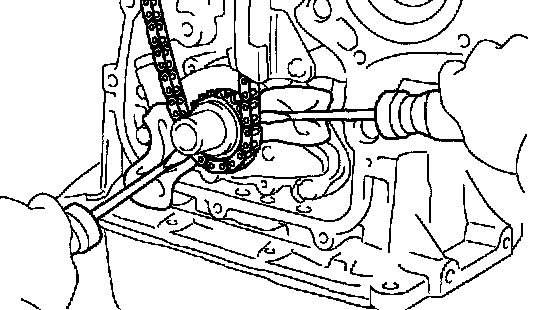 If necessary, pry between the timing chain and oil pump by 2 screwdrivers.