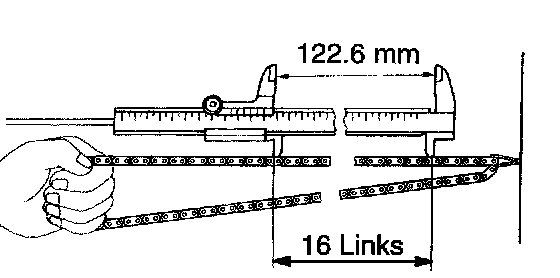 NOTICE: Vernier calipers contact the chain rollers for measuring.
