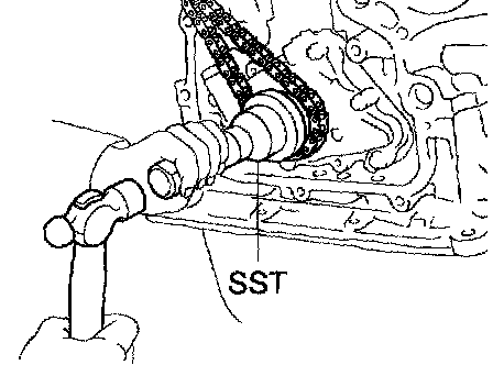 HINT: If necessary, tap in the sprocket with SST and a hammer.