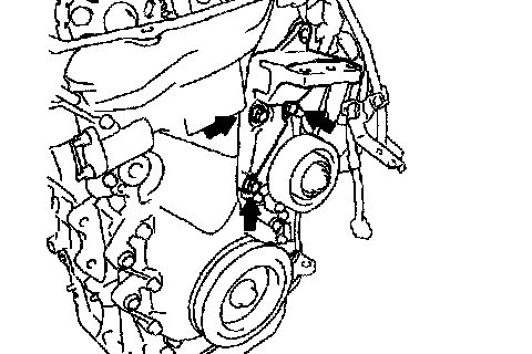 Remove the 2 bolts, 2 nuts and drive belt idler.
