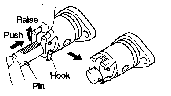 a. Release the ratchet pawl, fully push in the plunger and apply the hook to the pin so that the plunger cannot spring out.