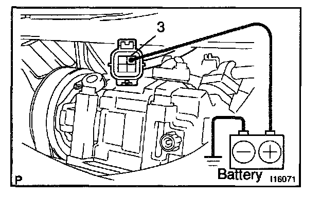 b. Connect the positive (+) lead form the battery to terminal 3 and the negative (-) lead to the body ground.