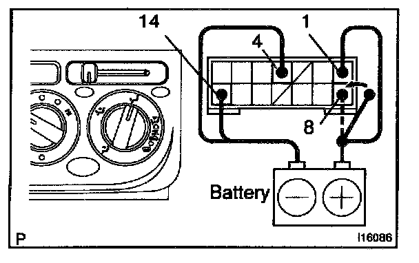 b. Connect the positive (+) lead from battery to terminal 8 and then check that the indicator dims.
