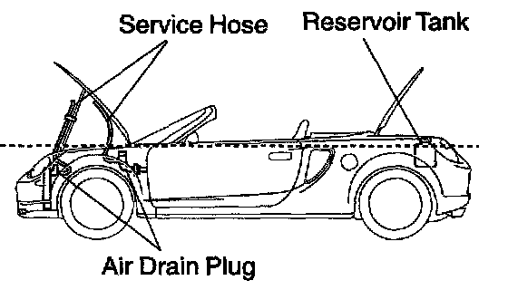 5) Check with your eyes that the water level of the air drain service hoses of radiator and heater water valve is as high as that of the reservoir tank.