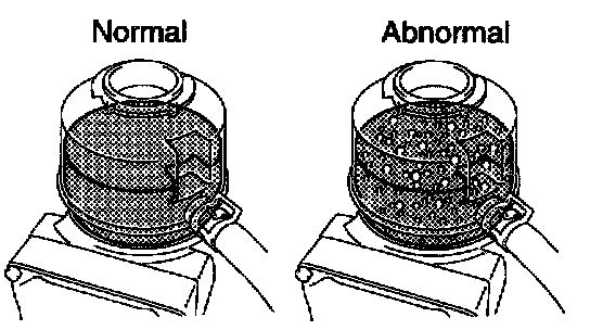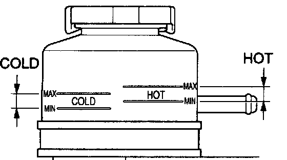 HINT: Check that the fluid level is within the HOT LEVEL range on the reservoir. If the fluid is cold, check that it is within the COLD LEVEL range.