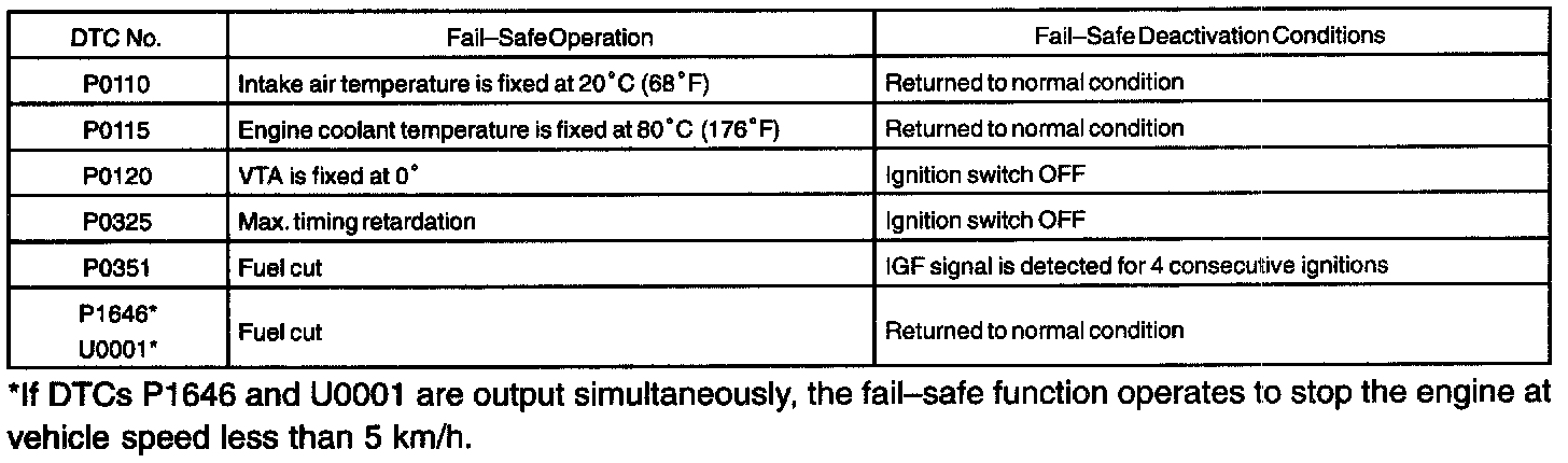 If any of the given codes is recorded, the ECM enters fail-safe mode.