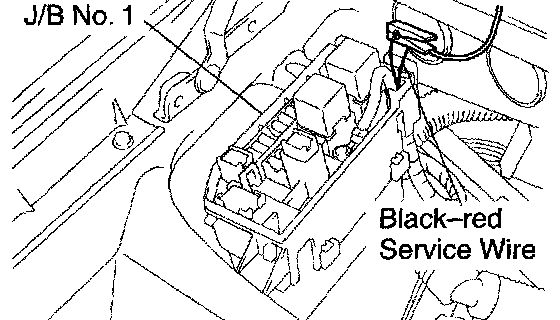 Connect the tester probe of a timing light to the black-red service wire in the J/B No. 1 as shown in the illustration.