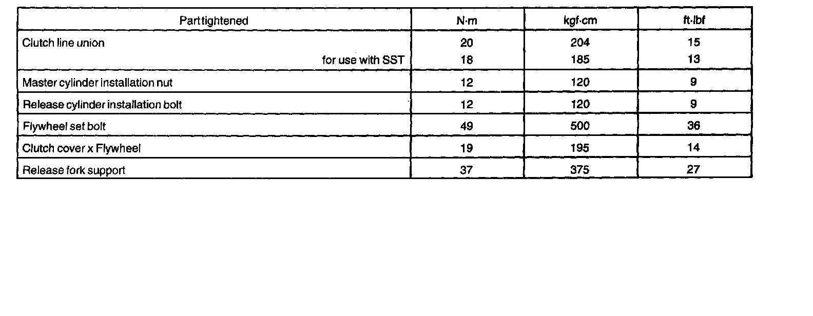 TORQUE SPECIFICATION