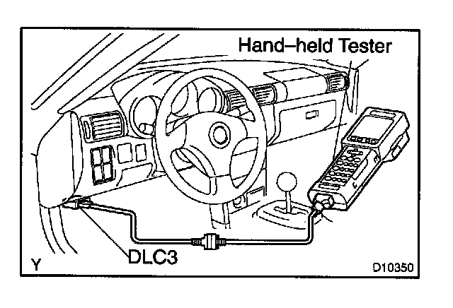2. Connect the the hand-held tester the OBD II scan tool to DLC3 at the lower portion of the instrument panel.