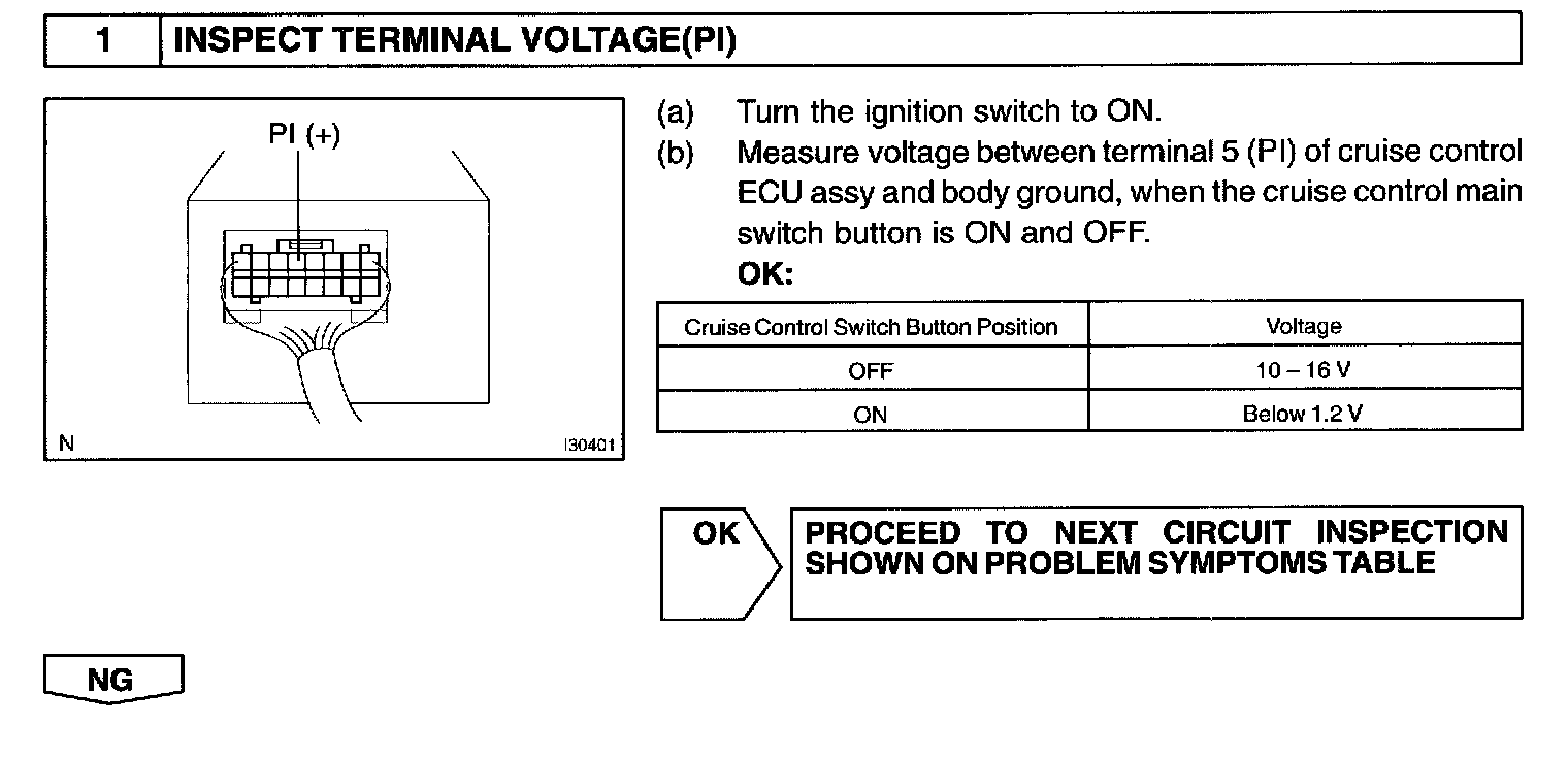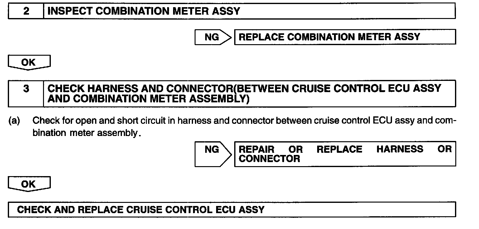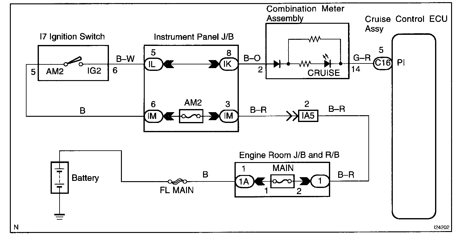 When the cruise control main switch assy button is turned to ON, CRUISE main indicator light comes on.