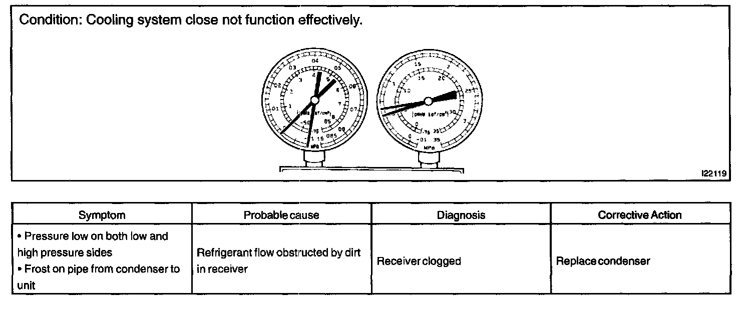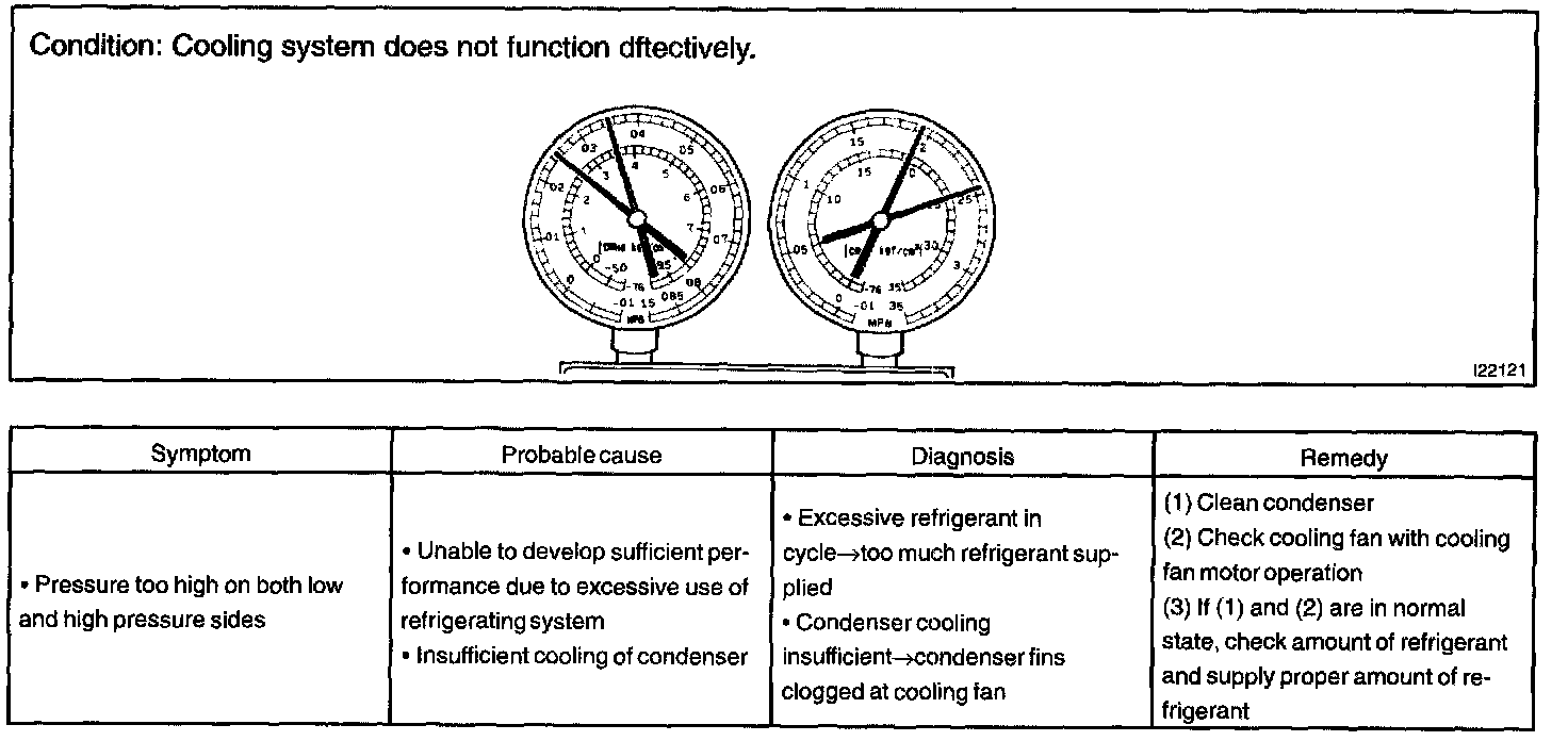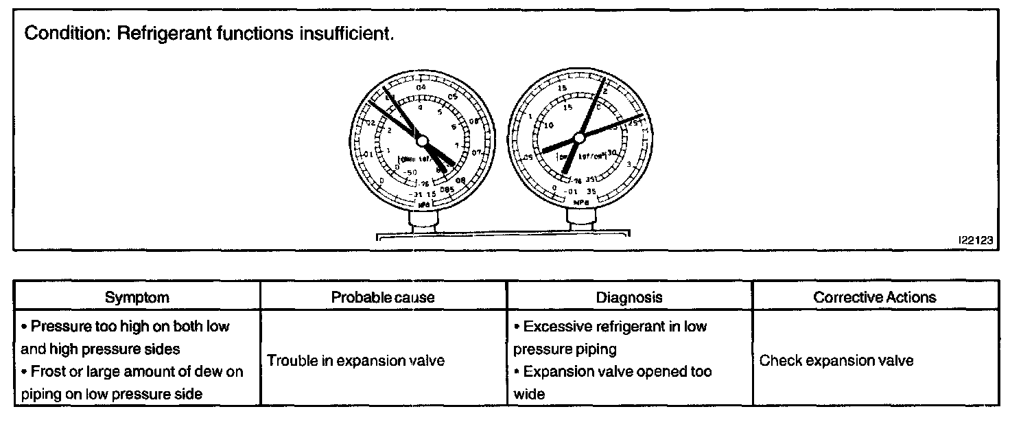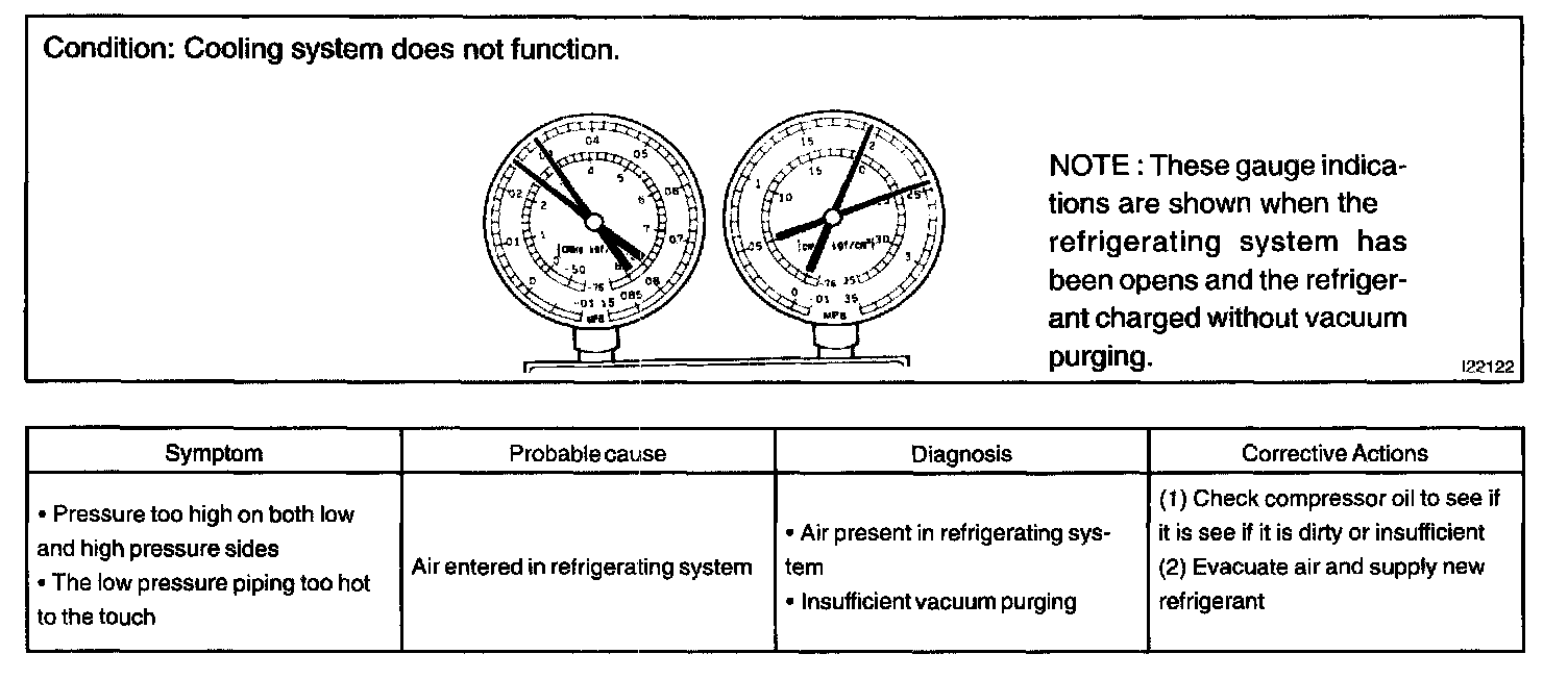 a. This is a method in witch the trouble is located by using a manifold gauge set. Read the manifold gauge pressure when the these conditions are established.