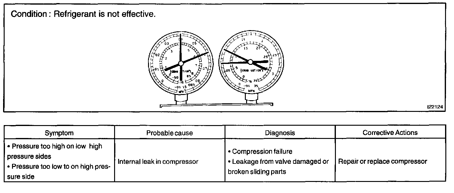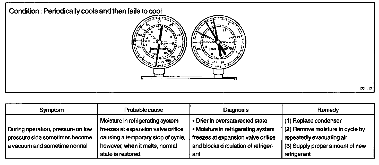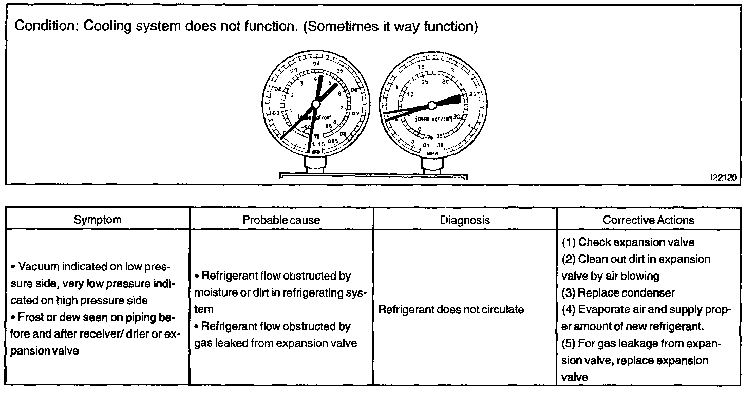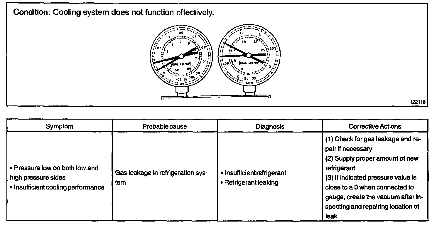 a. This is a method in witch the trouble is located by using a manifold gauge set. Read the manifold gauge pressure when the these conditions are established.
