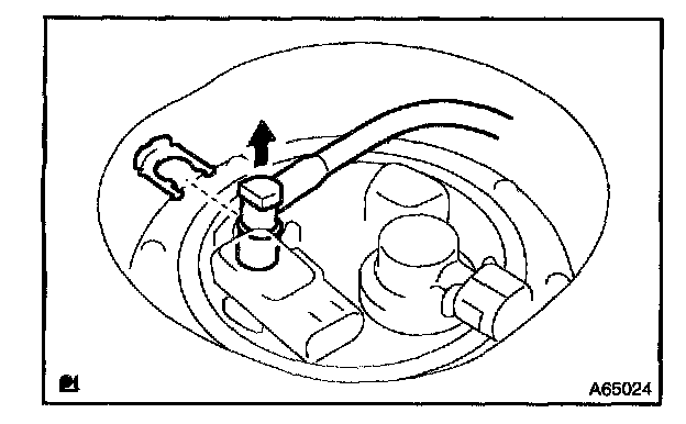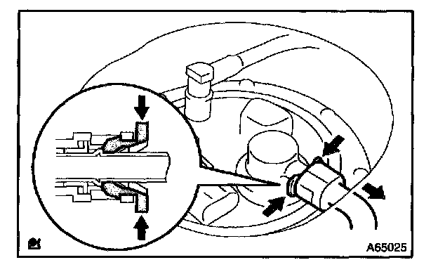 - When the fuel tube connector and pipe are stuck, pinch the fuel emission tube between fingers, and turn it carefully to free and then disconnect the fuel emission tube.