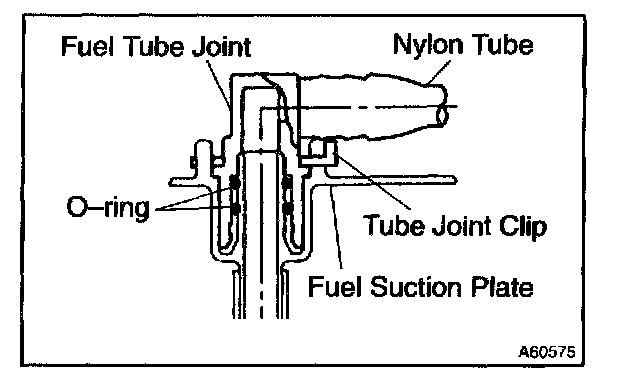 - After installing the tube joint clip, check that the fuel tube joint is not pulled off.