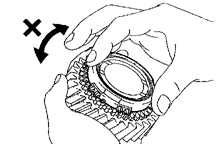 b. Check the braking effect of the synchronizer ring. Turn the synchronizer ring in one direction while pushing it to the gear cone, check that the ring locks.