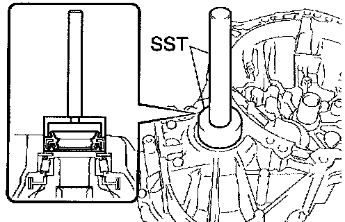 a. Using SST, remove the input shaft front bearing from the transaxle case.