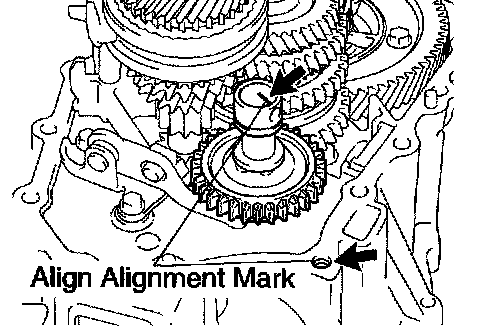 HINT: Align the mark on the reverse idler gear shaft with the bolt hole shown in the illustration.