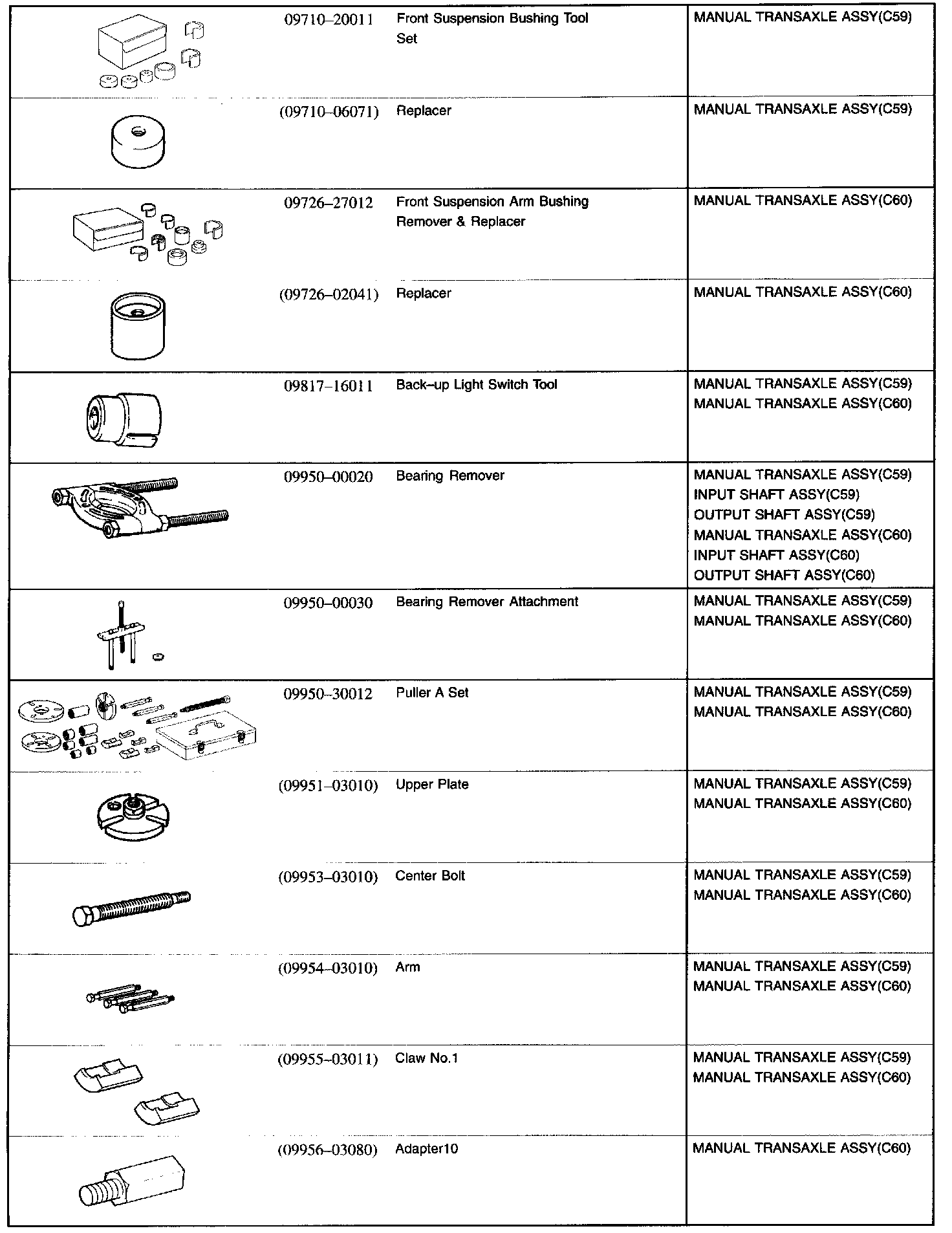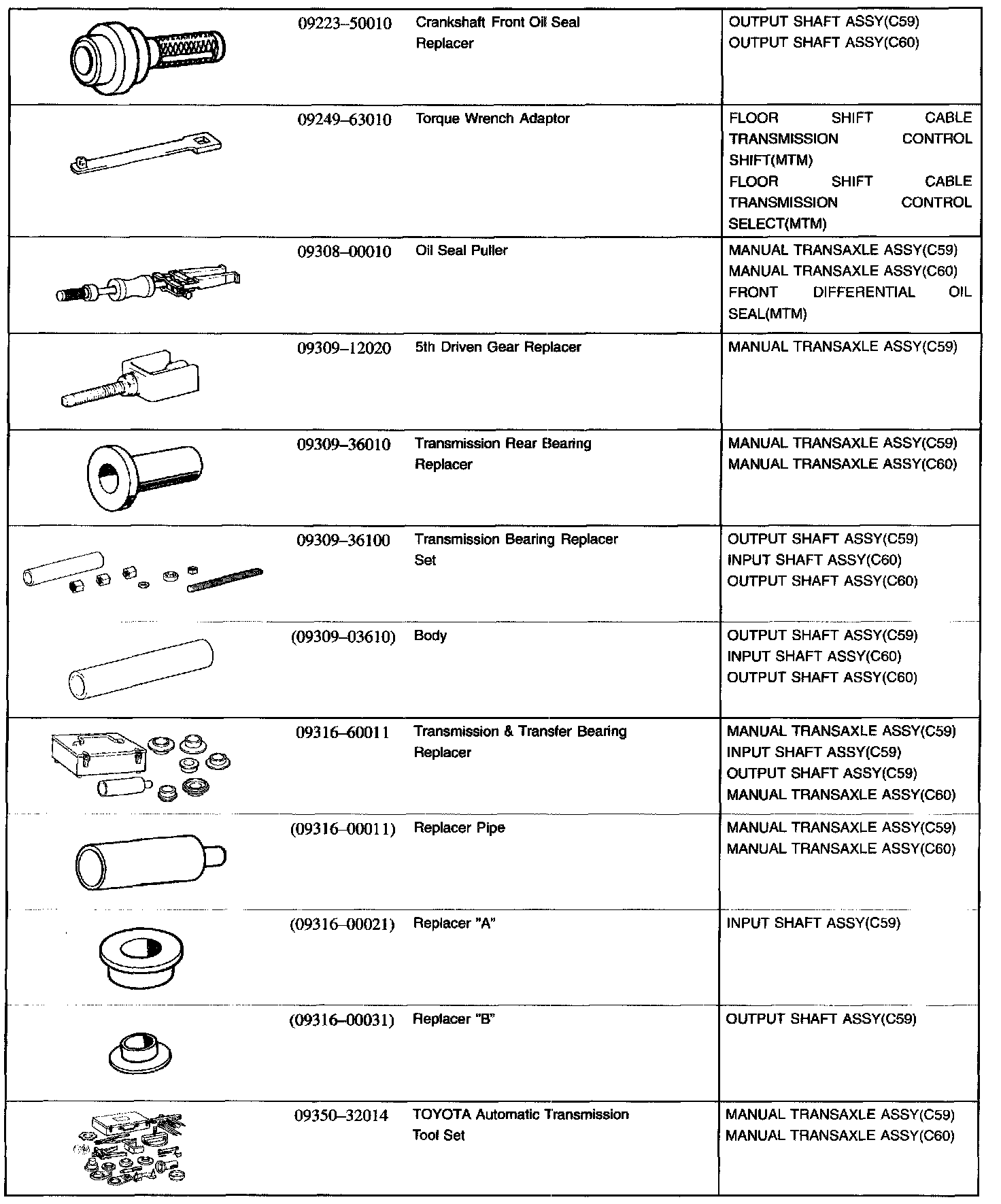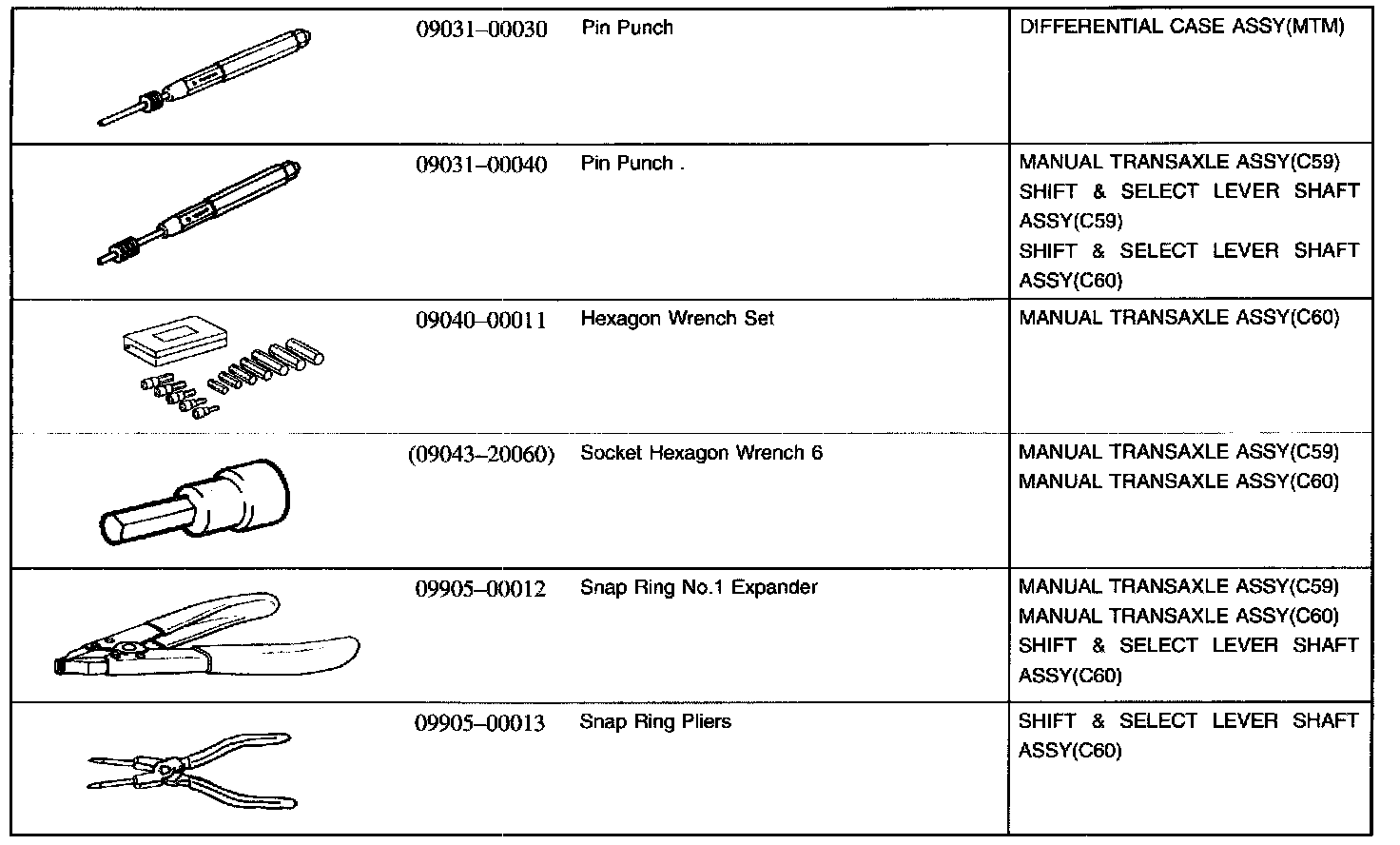 Manual Transmission/ Transaxle - SSM (Special Service Materials):