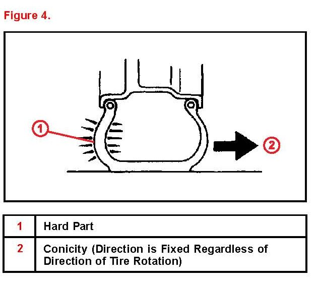 ^ When vehicle pulling is due to conicity, the amount of drift can be reduced and the direction of drift can be changed by changing the location of the tire or reversing the tire when installing it on the wheel.