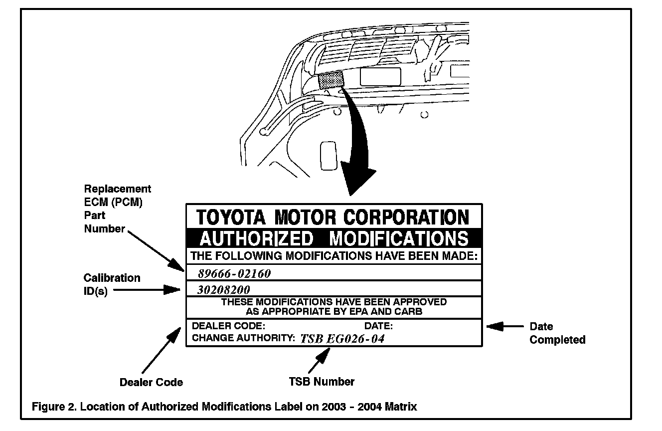 Some 2003 model year Matrix ATM vehicles with Delco ECM (P/N 89666-02160) are not reprogrammable. If the Diagnostic Tester displays an error message, confirm part number and then refer to the ECM (PCM) Replacement Procedure in this TSB.