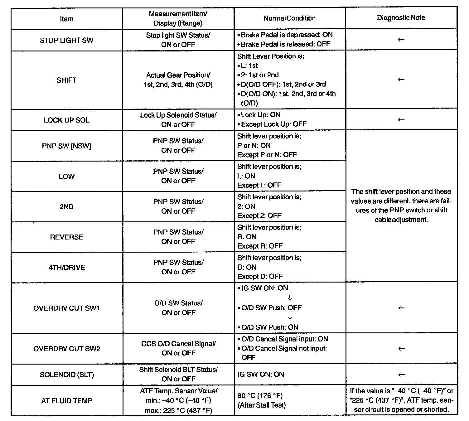 DATA LISTHINT: According to the DATA LIST displayed by the OBD II scan tool or Hand-held tester, you can read the value of the switch, sensor, actuator and so on without parts removal. Reading the DATA LIST as a first step of troubleshooting is one of the method to shorten the labor time.