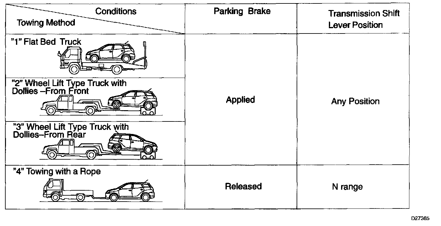 WHEN TOWING FULL-TIME 4WD VEHICLES- Use one of the methods shown to tow a vehicle.