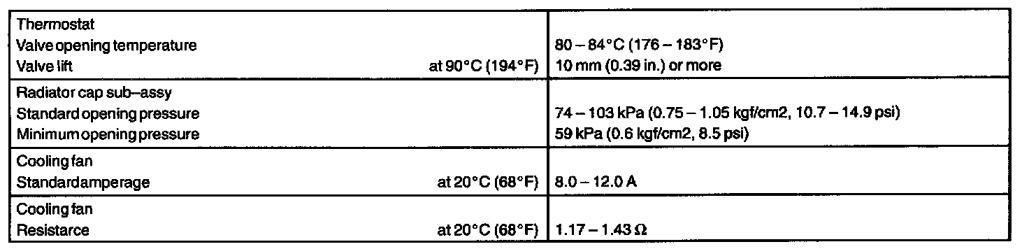 Cooling - Service Data: