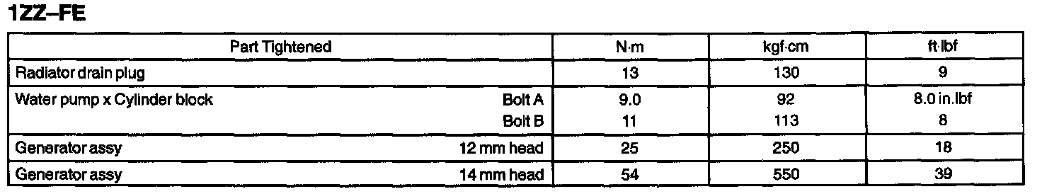 Cooling - Torque Specification: