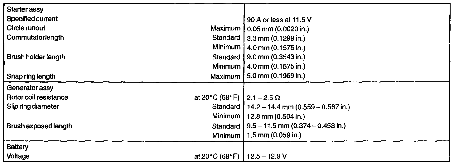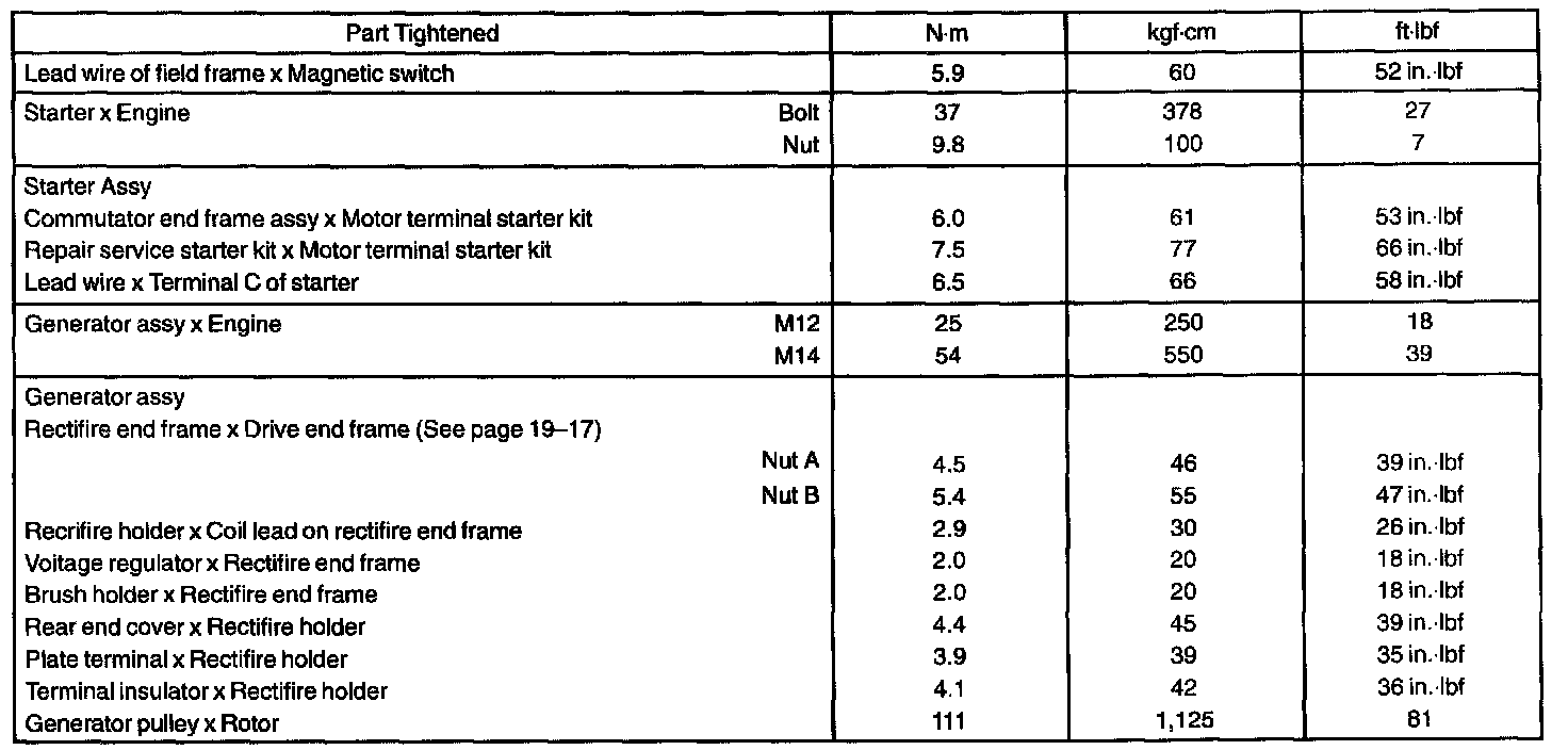 Starting & Charging - Torque Specification: